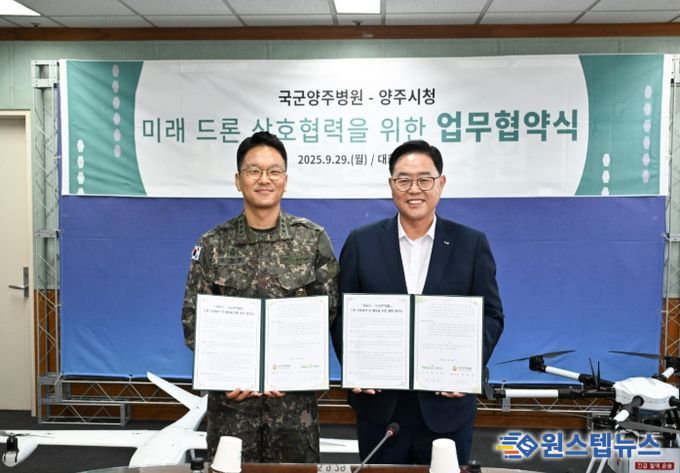 원스텝뉴스 이병희 기자 | 양주시가 지난 29일 국군양주병원과 손잡고 ‘드론산업 발전 및 활용을 위한 업무협약’을 체결했다.