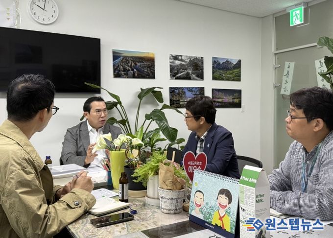 원스텝뉴스 이병희 기자 | 경기도의회 농정해양위원회 이오수 의원(국민의힘, 수원9)은 1일 경기도의회 의원실에서 광교신도시 개발이익금의 합리적이고 투명한 활용 방안을 논의하기 위해 수원특례시 도시개발국 도시개발과 관계자들과 간담회를 가졌다.