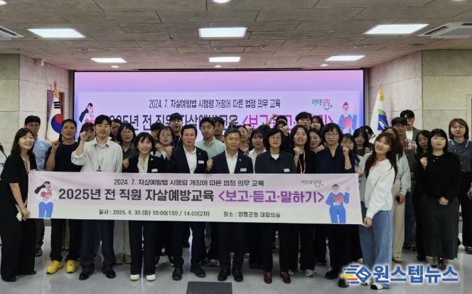 원스텝뉴스 이병희 기자 | 양평군은 지난 9월 30일 양평군청 대회의실에서 공공기관 종사자 약 100명을 대상으로 ‘자살 예방 생명지킴이 교육’을 실시했다.