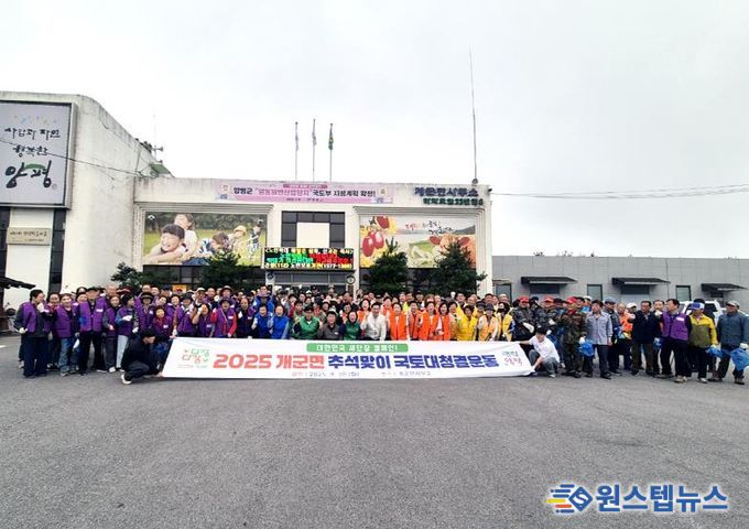 이번 국토대청결운동은 주민과 기관·단체가 함께 참여한 뜻깊은 시간이었으며, 개군면은 앞으로도 지속적인 환경 정비 활동을 통해 더욱 청결하고 매력적인 고장을 만들어 나갈 계획이다.