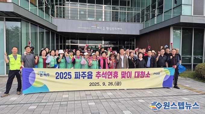 원스텝뉴스 이병희 기자 | 파주시 파주읍은 추석을 앞두고 지난 26일 깨끗한 도시 미관 조성을 위해 이장단협의회, 새마을협의회, 새마을부녀회, 생활개선회 등 마을 주민 80여 명이 참여한 가운데 추석맞이 일제 대청소를 진행했다.