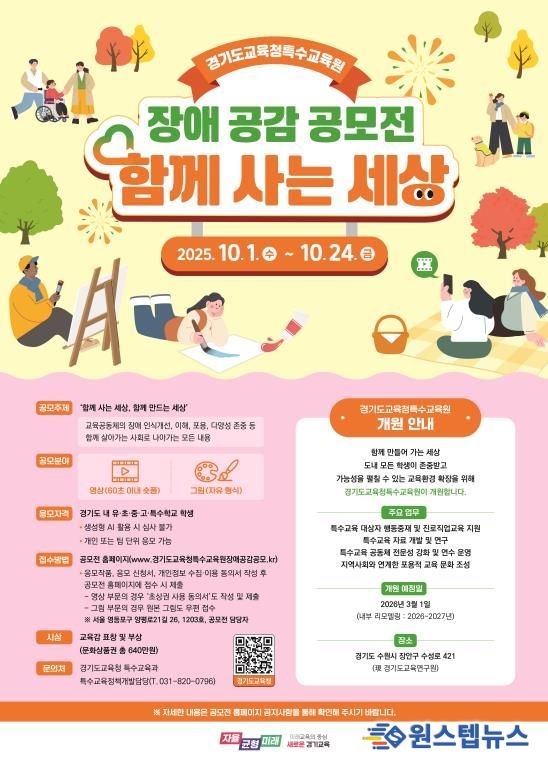 이번 공모전은 2026년 3월을 목표로 개원을 준비 중인 (가칭)경기도교육청특수교육원 설립을 앞두고, 장애 공감 문화 확산과 장애 인식 개선, 도민과 함께 적극 소통하기 위한 취지로 마련했다.