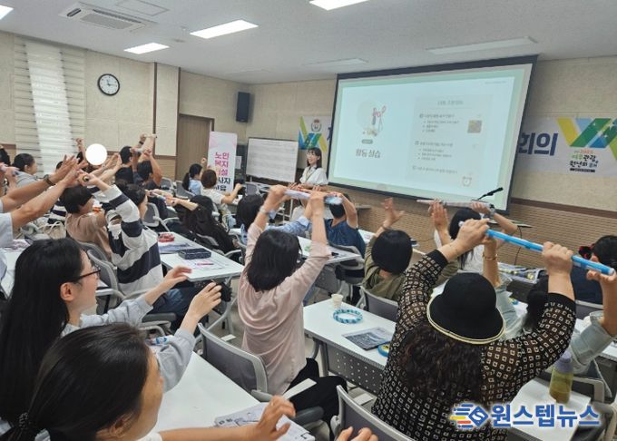 주요 내용은 ▲노화로 인한 인지이해 ▲인지단계별 프로그램 적용 ▲활동도구 만들기 ▲실전활용 가능한 인지⋅신체활동 실습 등으로 구성됐다. 특히 이번 교육은 실습 중심으로 진행되어, 종사자들이 교육 내용을 직접 체험하고 향후 시설 운영에 활용할 수 있도록 구성되어 현장의 만족도을 높였다.