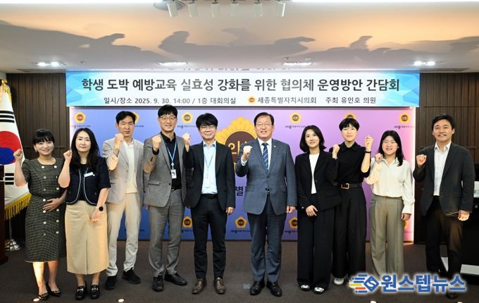 원스텝뉴스 이병희 기자 | 유인호 세종시의회 의원(더불어민주당, 교육안전위원회 소속)은 지난 30일 세종시의회 1층 대회의실에서 ‘학생 도박 예방 교육 실효성 강화를 위한 협의체 운영 방안’을 논의하는 간담회를 열었다. 간담회에는 세종시교육청 학교정책 담당자, 세종경찰청, 세종충북 도박 문제 예방 치유센터 관계자와 세종시 학부모 대표들이 참석했다.