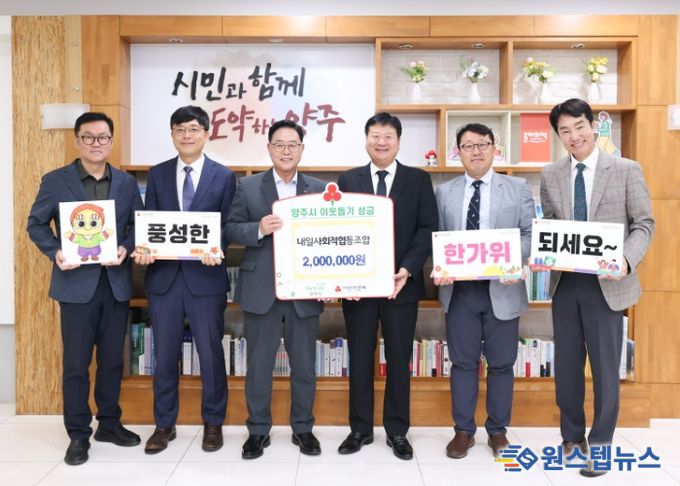 원스텝뉴스 이병희 기자 | 양주시가 지난 30일 내일사회적협동조합(이사장 송영진)로부터 성금 200만원을 기탁받았다.
