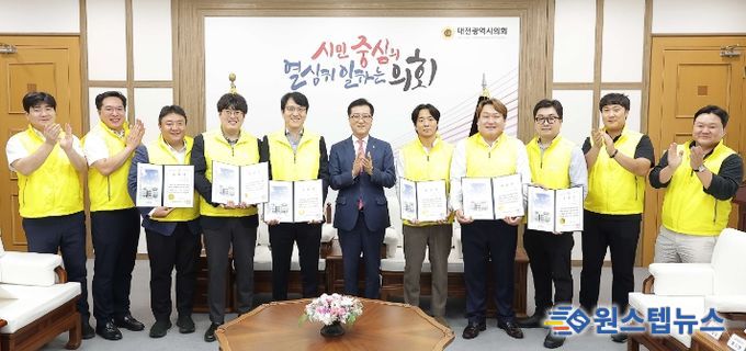 원스텝뉴스 이병희 기자 | 대전시의회 조원휘 의장은 1일‘열두별봉사단’회원 6명을 초청해 표창장 수여 및 환담을 진행했다.