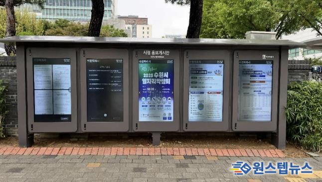 원스텝뉴스 이병희 기자 | 수원특례시는 시청 오른쪽 횡단보도 앞에서 운영하던 시정게시판을 디지털 전자게시판인 ‘시민공감 스마트 시정게시판’으로 교체했다.