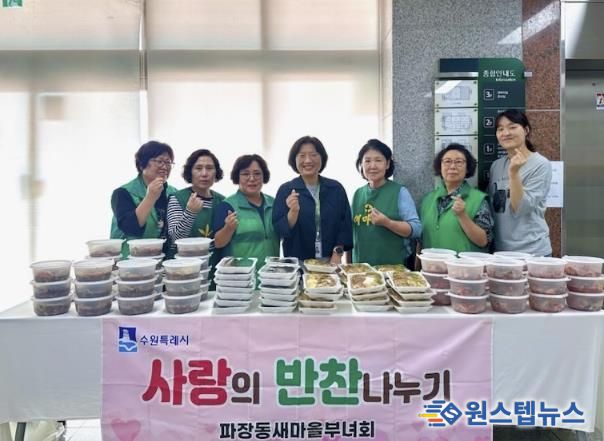 원스텝뉴스 이병희 기자 | 수원시 장안구 파장동 새마을부녀회는 지난 1일, 지역 주민들과 함께 따뜻한 정을 나누는 ‘사랑의 반찬 나누기’ 행사를 열었다.