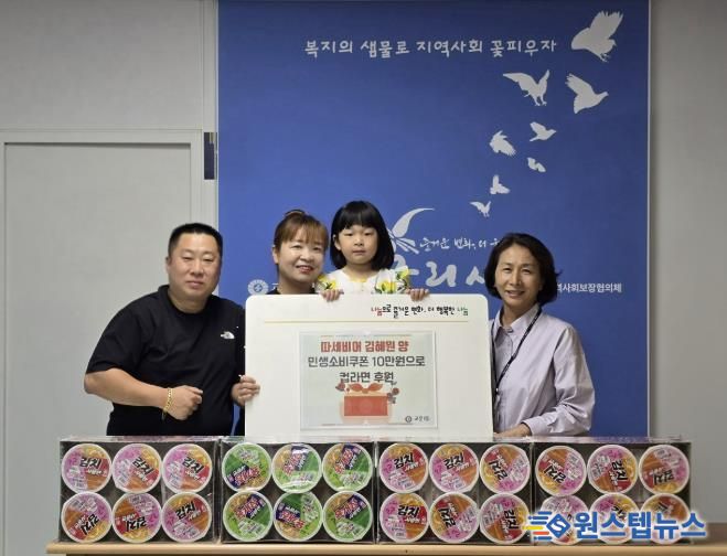 원스텝뉴스 이병희 기자 | 구리시 교문1동 행정복지센터는 지난 10월 1일, 관내 식당 따세비어의 딸 김혜원(5세) 양이 민생 소비 쿠폰 10만 원으로 마련한 컵라면 17박스를 어려운 취약계층에 전달하기 위해 기탁했다고 밝혔다.