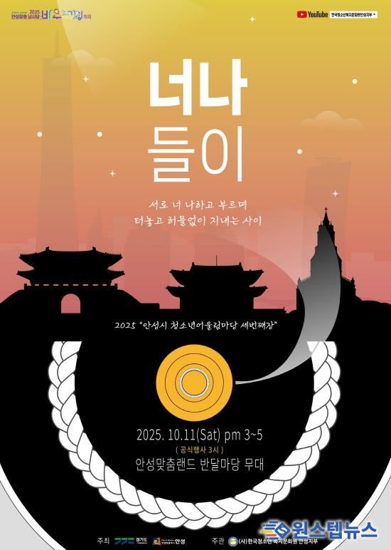 특히 이번 공연은 현장 관람과 동시에 온라인 생중계도 함께 진행된다. 현장을 찾지 못해도 유튜브 ‘한국청소년복지문화원 안성지부 채널’과 ‘안성시청 채널’에서 누구나 함께 즐길 수 있다.