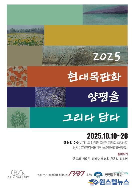 원스텝뉴스 천규영 기자 | 양평문화재단은 아신갤러리 10월 전시로 10월 10일부터 26일까지 ‘2025 현대목판화 양평을 그리다 담다 전(展)’을 개최한다.