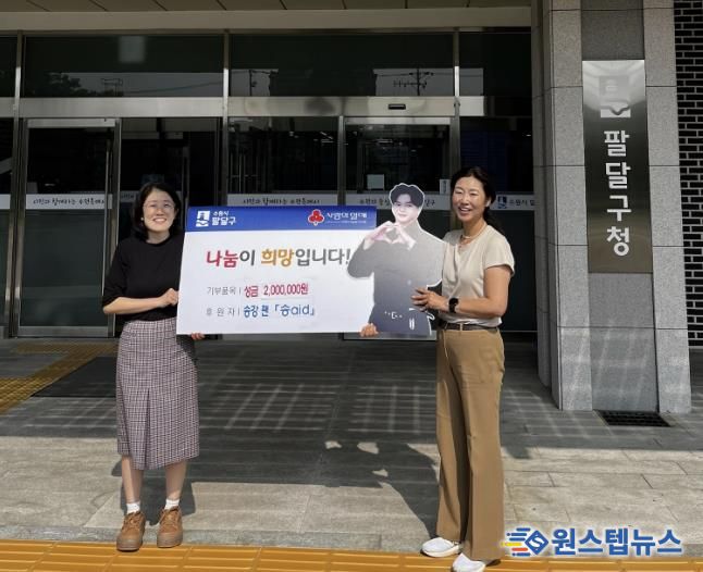 이상균 팔달구청장은 “따뜻한 나눔을 실천해주신 송강 팬모임 ‘송aid’에 깊이 감사드린다”며, “전달해주신 성금은 어려운 아동·청소년들에게 소중히 쓰일 수 있도록 최선을 다하겠다”고 말했다.