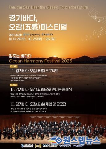 원스텝뉴스 천규영 기자 | (재)김포문화재단은 오는 10월 25일부터 26일까지 양일간 김포 아라마리나 문화광장에서 'Ocean Harmony Festival 2025, 경기바다 오감(五感) 페스티벌'을 개최한다고 밝혔다. 이번 행사는 한국경제TV 및 한경arteTV가 주관하고 경기관광공사가 후원한다.