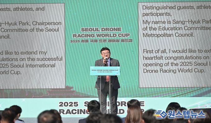 원스텝뉴스 이병희 기자 | 서울특별시의회 박상혁 교육위원장(서초 제1선거구, 국민의힘)은 10월 1일 광나루 한강드론공원에서 열린 '2025 서울 국제 드론 레이싱 월드컵'개회식에 참석하여 대회 개회를 축하하고, 참가 선수단과 관계자들을 격려했다.