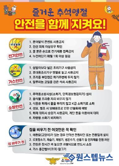 이종충 광명소방서장은 “가족과 함께하는 따듯한 추석 연휴가 안전속에서 이어질 수 있도록 시민 여러분께서 생활 속 작은 안전수칙을 꼭 지켜주길 바란다”고 전했다.