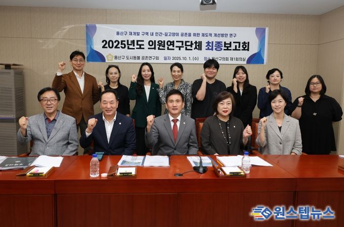 이번 최종보고회에는 ▲용산구 도시동물 공존연구회 (대표의원 이인호) ▲용산비전기획 (대표의원 황금선) ▲서울시 용산구 지속가능한 폐기물 처리방안 연구회 (대표의원 이미재) 등 총 3개의 의원연구단체가 참여했다.