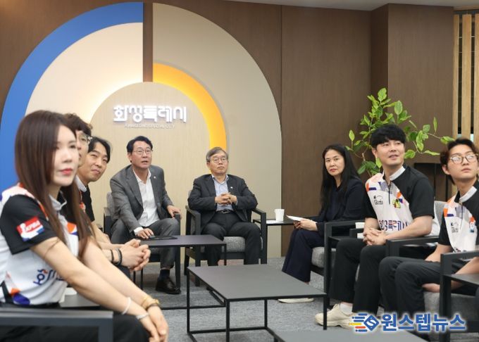 원스텝뉴스 이병희 기자 | 화성특례시는 2일 시청 중앙회의실에서 ‘2025 동트는 동해컵 프로볼링대회’에서 개인전 및 단체전 우승을 차지한 팀MK글로리아 프로볼링팀을 초청해 격려했다.