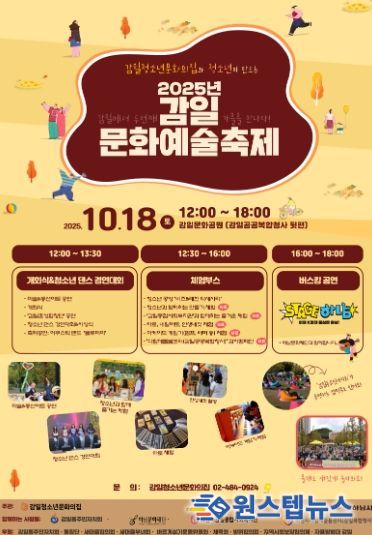 원스텝뉴스 천규영 기자 | 하남시 감일청소년문화의집은 오는 10월 18일 오후 12시부터 18시까지 감일문화공원(감일공공복합청사 뒷편)에서 '제2회 감일문화예술축제'를 개최한다.