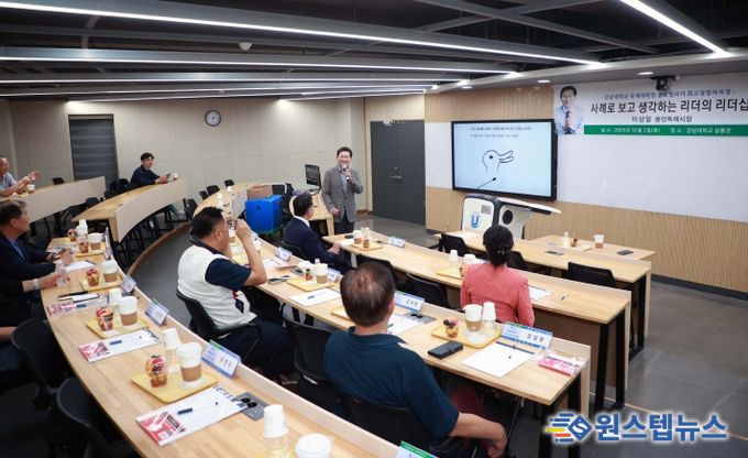 원스텝뉴스 이병희 기자 | 이상일 용인특례시장은 2일 저녁 강남대학교에서 ‘강남대학교 국제대학원 글로벌리더 최고경영자과정’ 수강생을 대상으로 특강을 했다.