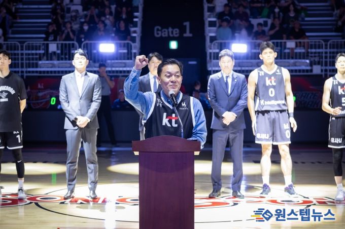 수원KT소닉붐과 부산KCC의 홈 개막전에서 축사를 한 이재준 시장은 “시민과 함께 수원KT 소닉붐의 우승을 기원하며 시민들과 함께 응원하겠다”고 말했다. 이재준 시장은 개막선언을 했다.