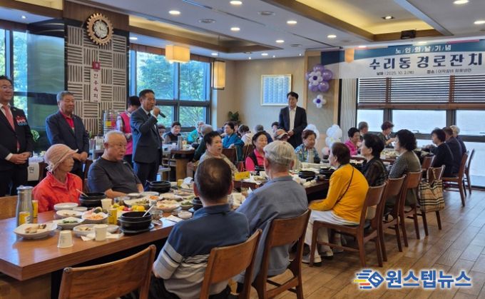 원스텝뉴스 이병희 기자 | 군포시 수리동 주민자치회(회장 고진해)는 제29회 노인의 날을 맞아 지난 10월 2일 수리동 어르신들을 대상으로 경로잔치를 개최했다. 이번 행사는 하은호 군포시장, 이학영 국회부의장 등 여러 내빈과 수리동 직능단체장들이 어르신 100여 명과 뜻깊은 자리를 함께했다.