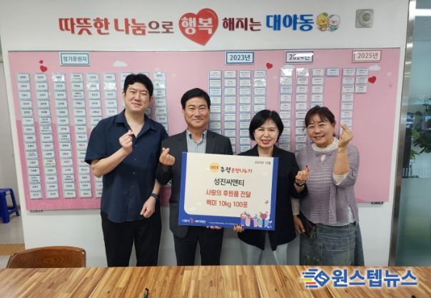 한성운 ㈜성진씨앤티 대표는 “대야동의 한 기업으로서 지역사회에 도움이 되고 싶어 기부를 결심했다”라며 “이번에 전달된 쌀이 추석을 앞두고 어려운 이웃들에게 작은 힘이 되길 바란다”라고 말했다.