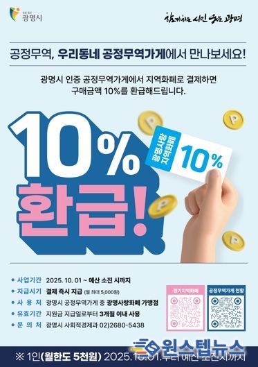 박승원 광명시장은 “공정무역과 지역화폐를 결합한 이번 사업은 시민들의 착한 소비 문화를 확산시키고 지역경제의 선순환을 강화하는 중요한 계기가 될 것”이라며 “앞으로도 시민과 함께 사회적 가치를 실현할 수 있는 다양한 정책을 지속적으로 추진하겠다”고 말했다.