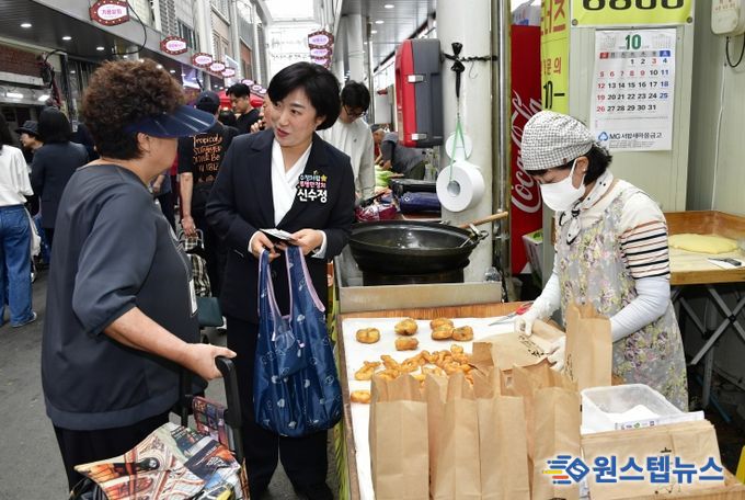 이날 신 의장은 온누리상품권과 민생회복 소비쿠폰을 활용해 장을 보며 박창순 상인회장을 비롯한 상인들과 만나 현장의 목소리를 청취하고, 추석 준비로 장을 보러 나온 시민들과 따뜻한 인사를 나누었다.