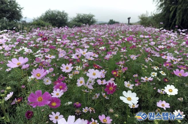 원스텝뉴스 이병희 기자 | 성남시 탄천 태평 습지생태원(수정구 태평동) 일대에 백만 송이의 코스모스 길이 펼쳐져 가을 정취를 전하고 있다.