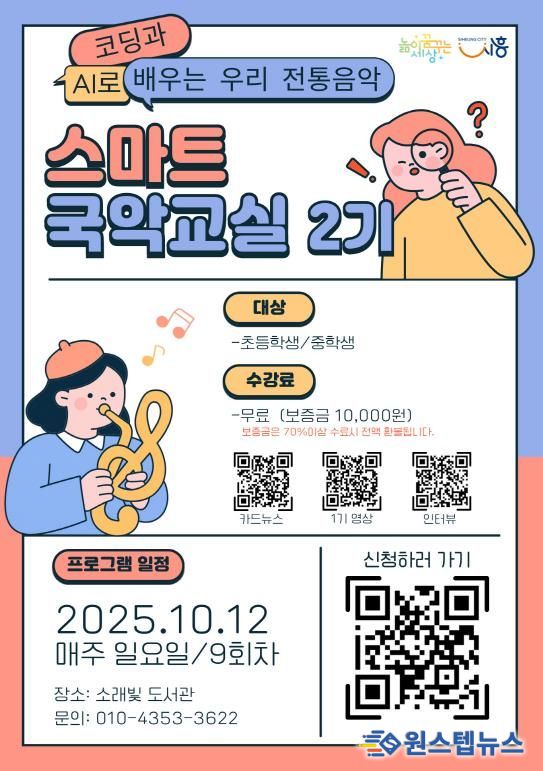 이 프로그램은 블록코딩과 인공지능(AI)을 접목해 국악기를 직접 제작하고 연주할 수 있도록 구성됐다. 어린이와 청소년들에게 전통음악과 디지털 융합 경험을 동시에 제공하는 과정으로, 지난 여름방학 특강에서도 참여 학생들의 큰 호응을 얻은 바 있다.