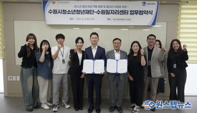 원스텝뉴스 이병희 기자 | 수원시청소년청년재단과 수원일자리센터는 10월 2일, 청소년청년의 취업 역량 강화와 일자리 지원을 위한 업무협약(MOU)을 체결했다.