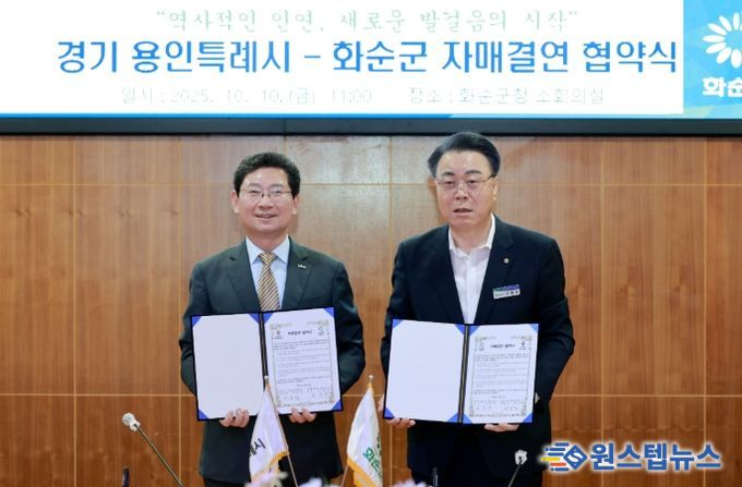 원스텝뉴스 이병희 기자 | 용인특례시는 10일 전라남도 화순군과 자매결연을 체결하고 두 도시의 교류와 발전을 위해 적극 협력키로 했다.