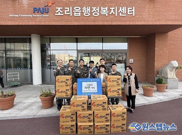 원스텝뉴스 이병희 기자 | 파주시 조리읍은 지난 2일, 3653부대 장병들과 예수가온교회가 추석을 맞아 지역 내 어려운 이웃을 돕기 위해 라면 16박스를 기탁했다고 밝혔다.