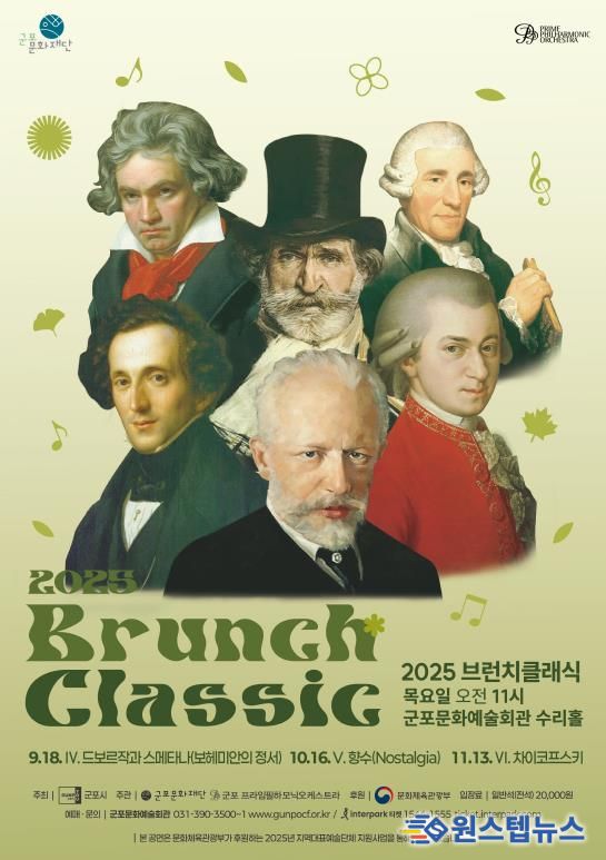 원스텝뉴스 천규영 기자 | 군포문화재단은 오는 10월 16일 오전 11시, 군포문화예술회관 수리홀에서 ‘2025 브런치클래식’의 다섯 번째 공연을 개최한다.