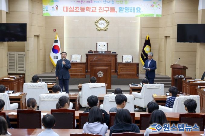 원스텝뉴스 이병희 기자 | 계룡시의회는 10월 13일 본회의장에서 대실초등학교 4학년 학생 80여명을 대상으로 모의의회 체험을 진행했다.