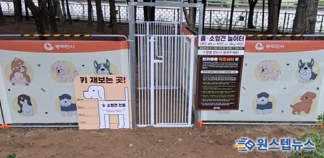 원스텝뉴스 이병희 기자 | 동두천시는 반려견과 시민이 함께 어울릴 수 있는 반려동물 문화공간을 조성하기 위해 강변로 156(강변근린공원 내)에 반려견 간이놀이터(이동식 울타리)를 설치하고 시범운영에 들어갔다고 밝혔다.