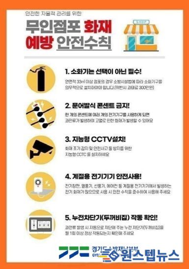 원스텝뉴스 이병희 기자 | 남양주소방서는 13일, 최근 증가하는 무인점포 화재사고를 예방하기 위해 ‘무인점포 화재예방 안전수칙’ 집중 홍보에 나섰다.