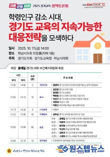 행사는 경기도의회, 경기도교육청, 하남시의회가 공동 주최하며, 윤태길 의원이 좌장을 맡아 진행한다.