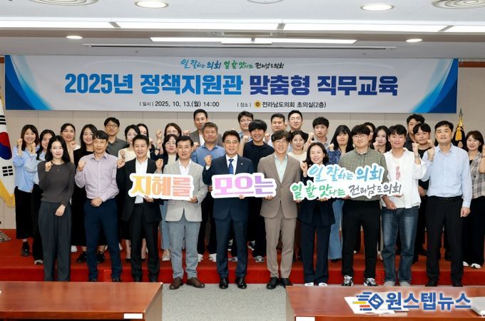 원스텝뉴스 이병희 기자 | 전라남도의회는 10월 13일, 도의회 초의실에서 소속 정책지원관과 직원을 대상으로 ‘맞춤형 직무교육’을 실시했다.