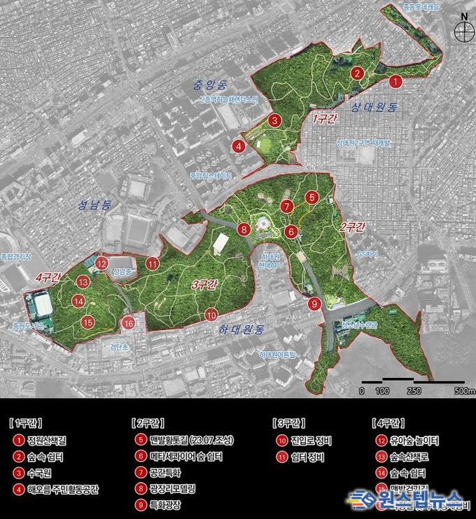 시는 대원공원 내 미정비 공원 부지를 중심으로 중앙·하대원·성남동 구간을 1~4구간으로 특화했다.