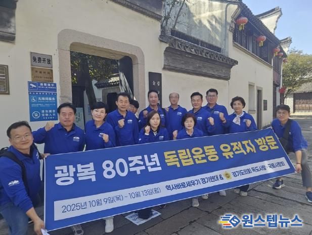 원스텝뉴스 이병희 기자 | 광복 80주년을 맞아 중국 내 항일 독립운동 유적지를 탐방한 경기도의회 ‘독도사랑ㆍ국토사랑회’와 ‘역사바로세우기 경기연대’가 5일간의 일정을 마치며, 선열들의 숭고한 정신을 이어받아 경기도에서 올바른 역사관을 정립하고, 영토 주권 수호를 위한 활동을 더욱 강력히 펼쳐나가겠다고 다짐했다.