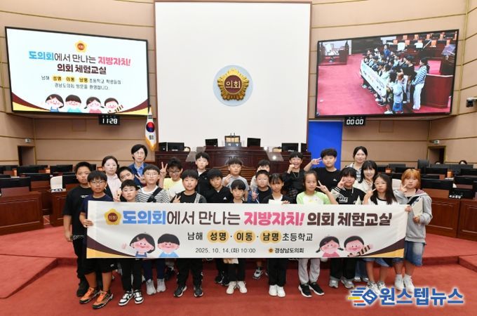 원스텝뉴스 이병희 기자 | 경상남도의회는 14일 남해 소규모 공동학교(성명초, 이동초, 남명초) 5학년 학생 20명을 대상으로 도의회에서 만나는 지방자치! 의회체험교실을 개최했다.