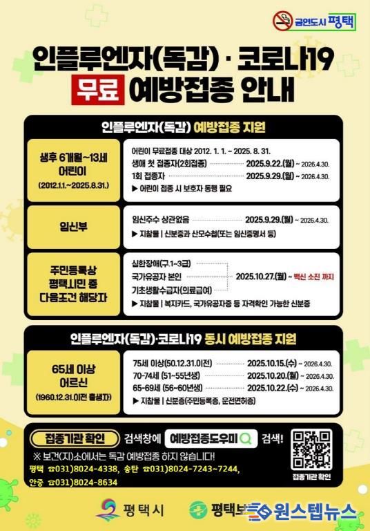 원스텝뉴스 이병희 기자 | 평택시는 오는 15일부터 2025-2026절기 코로나19 무료 예방접종을 지정 위탁의료기관에서 실시한다고 밝혔다.
