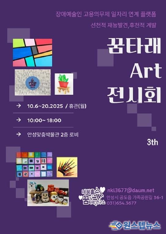 원스텝뉴스 천규영 기자 | 안성시 청소년 발달장애인들이 참여한 ‘꿈타래 Art 전시회’가 10월 6일 월요일부터 안성맞춤박물관 2층 로비에서 진행되고 있다.