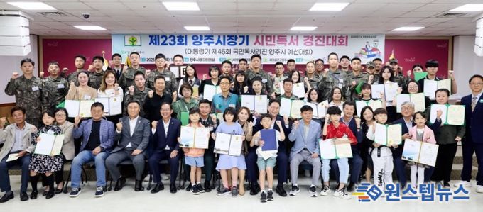 이번 대회는 제45회 대통령기 국민독서경진 양주시 예선대회와 병행하여 진행됐으며, 개인부문 최우수상은 ▲문재희(주원초) ▲용예솔(만송초) ▲임라희(유정글로벌) ▲김나윤(경민고) ▲김혜진(일반부) ▲연성호 하사(특별부) ▲정서후(편지글 학생부) ▲김승자(편지글 일반부) ▲김서율(시화 학생부) ▲이상미(시화 일반부)가 각각 수상의 영예를 안았다.