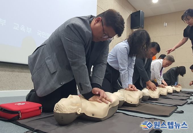 참석자들은 강사의 안내에 따라 직접 심폐소생술을 연습하며 골든타임 확보의 중요성과 신속한 응급조치의 필요성을 체험했다.