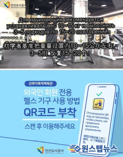 안내 내용은 시설 운영시간, 이용수칙, 헬스기구 사용법 등 다양한 정보를 포함하고 있으며, 특히 헬스기구 사용법은 영상으로 제공돼 러시아어와 중국어를 사용하는 주민에게 실질적인 도움을 주고 있다.