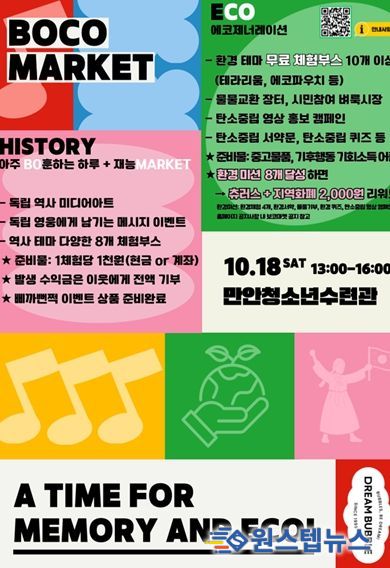 원스텝뉴스 천규영 기자 | 안양시청소년재단 소속 만안청소년수련관은 오는 10월 18일 청소년과 시민이 함께하는 ‘환경과 역사를 잇다 - BOCO MARKET & E-G 페스티벌’을 개최한다고 15일 밝혔다.