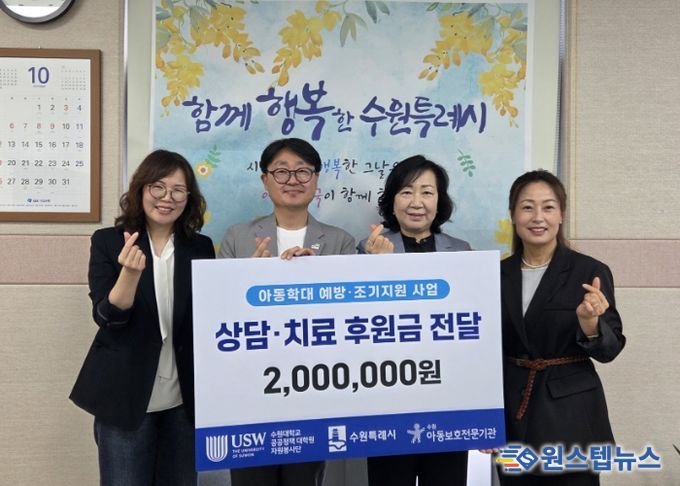 수원시는 아동학대 피해 아동의 심리상담·치료 지원 등 회복 지원을 위해 기부금을 사용할 예정이다.