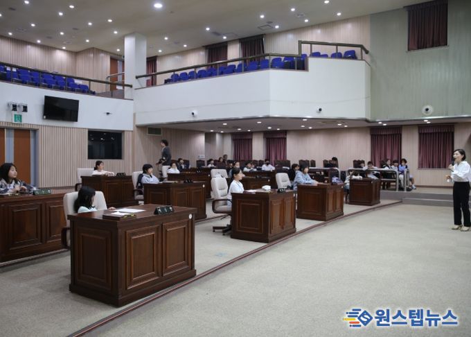 군포시의회는 15일 지역 내 당동초등학교 학생자치회 소속 학생 30명이 참여한 모의의회를 개최했다.